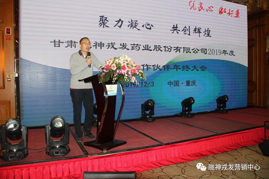 甘肅隴神戎發(fā)藥業(yè)股份有限公司副總經(jīng)理,營銷總監(jiān)蘇海龍先生做了2019年營銷工作總結(jié)及2020年規(guī)劃。蘇總首先分析了近年國家醫(yī)藥行業(yè)政策變動對全行業(yè)的影響,總結(jié)公司產(chǎn)品在2019年的銷售情況,并表示在2020年將繼續(xù)執(zhí)行新開發(fā)醫(yī)院獎勵、學(xué)術(shù)活動支持等銷售政策,持續(xù)打造優(yōu)秀的銷售服務(wù)能力,建設(shè)靈活多變的銷售渠道,堅持以銷售帶動企業(yè)的發(fā)展理念,勇于創(chuàng)新,繼續(xù)拼搏。希望在未來的道路上能夠與各位合作伙伴互相理解,互相信任,互相支持,共同發(fā)展。