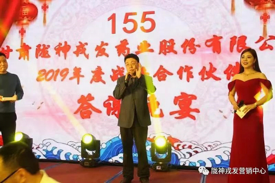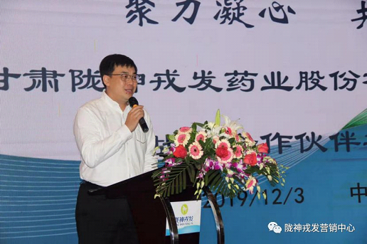 甘肅隴神戎發(fā)藥業(yè)股份有限公司董事、黨委書記、總經(jīng)理康永紅先生講話??悼偨?jīng)理回顧了隴神戎發(fā)從建廠到現(xiàn)在的發(fā)展變化,從公司近年發(fā)起營銷改革,設(shè)置大區(qū)辦事處,加強產(chǎn)品學(xué)術(shù)力打造等方面進行了介紹,康總經(jīng)理表示,隴神戎發(fā)將抓住隴藥產(chǎn)業(yè)發(fā)展及甘肅中藥大品種培育的時機,在甘肅藥業(yè)集團這個更高的平臺上,增大市場投入力度,打造產(chǎn)品升級,推進隴藥創(chuàng)新,與各位合作伙伴攜手前行,共創(chuàng)未來!