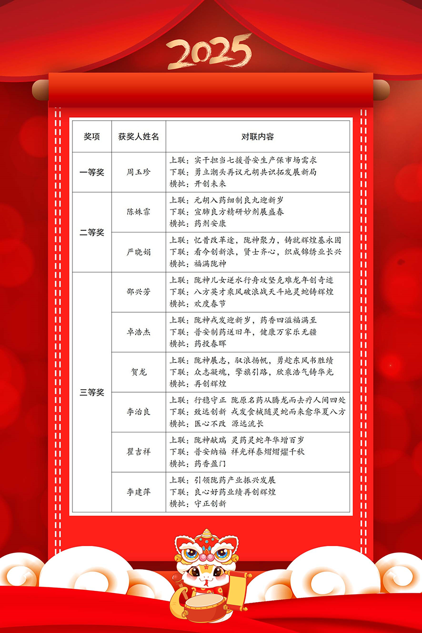 本次征集活動共征集到春聯(lián)作品41幅,最終評審出一等獎1名,二等獎2名,三等獎6名,參與獎若干?,F(xiàn)公布如下。
