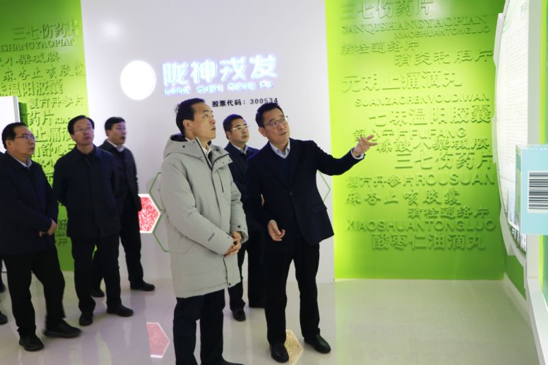 周學(xué)文常委一行領(lǐng)導(dǎo)視察了隴神戎發(fā)“年產(chǎn)200億?,F(xiàn)代中藥生產(chǎn)線擴(kuò)能改造項目”建設(shè)項目一期“年產(chǎn)100億粒滴丸劑生產(chǎn)基地建設(shè)項目”。康海軍董事長向周學(xué)文常委匯報了永新集團(tuán)發(fā)展戰(zhàn)略及四大板塊,隴神戎發(fā)未來發(fā)展戰(zhàn)略、年產(chǎn)200億?,F(xiàn)代中藥生產(chǎn)線擴(kuò)能改造項目具體情況??岛\姸麻L重點對隴神戎發(fā)作為蘭州白銀國家自主創(chuàng)新示范區(qū)代表企業(yè)開展的技術(shù)創(chuàng)新工作及元胡止痛滴丸大品種培育等工作做了詳細(xì)匯報。周學(xué)文常委詢問了解了隴神戎發(fā)二期項目規(guī)劃,計劃投資情況及目前的進(jìn)展。