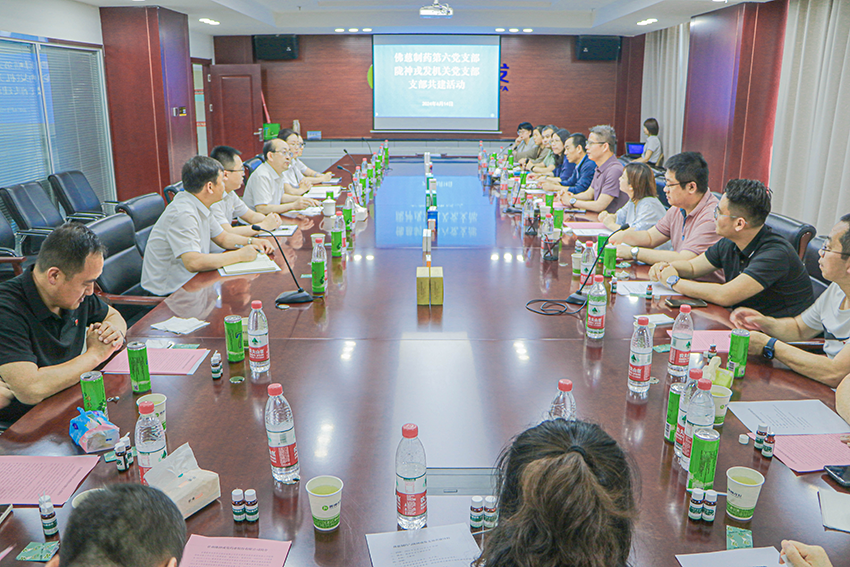 為進(jìn)一步加強(qiáng)基層黨組織建設(shè),切實(shí)發(fā)揮黨建引領(lǐng)作用,推動(dòng)黨建工作與業(yè)務(wù)工作深度融合,6月14日,隴神戎發(fā)機(jī)關(guān)黨支部與佛慈制藥第六黨支部共同開展聯(lián)學(xué)共建主題黨日活動(dòng)。佛慈制藥董事會(huì)秘書王軍輝帶隊(duì)蒞臨,隴神戎發(fā)黨委委員、副總經(jīng)理、董事會(huì)秘書元勤輝,紀(jì)委書記楊俊萍全程陪同參觀座談。