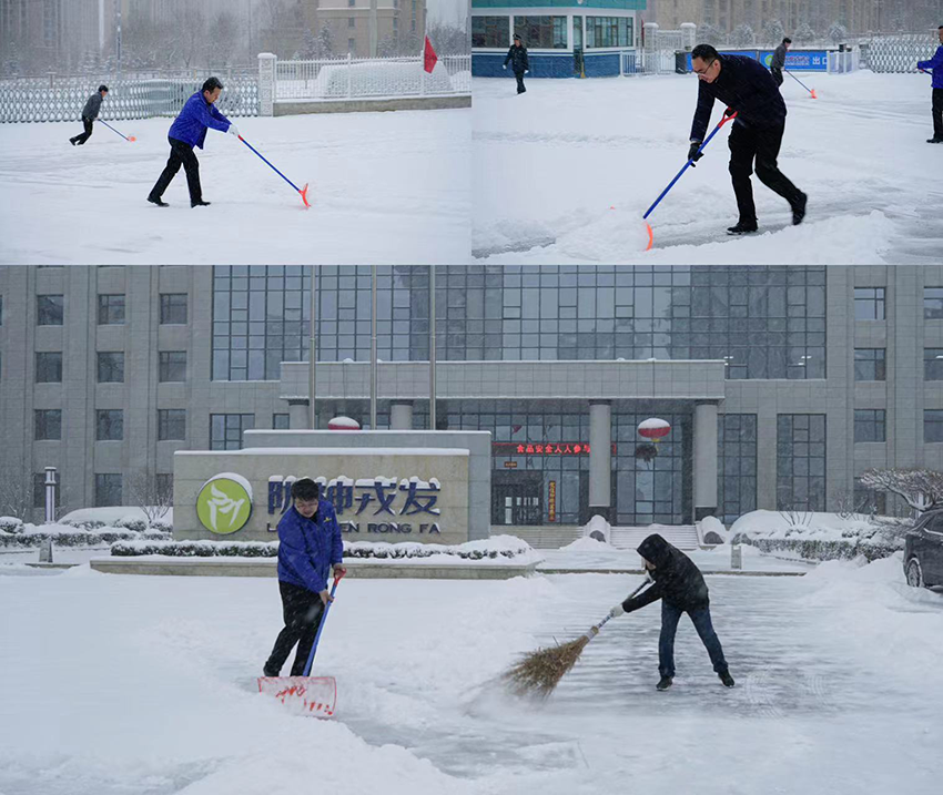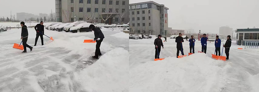 落雪是景,掃雪為情。在清掃過程中,大家手持各類除雪工具,不畏嚴(yán)寒、協(xié)作配合、干勁十足。一個(gè)個(gè)忙碌的身影在雪地中構(gòu)成了一道風(fēng)景線。經(jīng)過大家一個(gè)多小時(shí)的通力合作,廠區(qū)內(nèi)主干道全部清理完畢,及時(shí)消除了安全隱患。