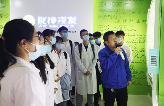 本次參觀是西北師范大學針對制藥工程專業(yè)本科生開展的一次藥品GMP生產(chǎn)車間實地參觀與學習。師生們分別參觀了制劑大樓展廳、制劑車間、外包裝車間、前處理提取車間及公司質檢研發(fā)大樓7樓質量檢驗中心。在制劑大樓展廳,孫波總助為師生們簡要介紹了公司的基本概況、發(fā)展歷程等,重點對公司元胡止痛滴丸、鞣酸小檗堿膜等4個全國獨家產(chǎn)品及保健食品黃芪當歸膠囊進行介紹。隨后,師生們進入制劑車間,詳細了解公司主打產(chǎn)品元胡止痛滴丸的滴制、生產(chǎn)等工藝流程,并在外包裝車間聯(lián)動線前觀看了元胡止痛滴丸內包及外包裝生產(chǎn)全過程。在前處理提取車間,講解人員細致的講解使師生們對中藥材前處理整個加工環(huán)節(jié)有了更進一步的了解。最后,師生們一行來到質檢研發(fā)大樓7樓,實地參觀了公司質量檢驗中心,在工作人員的講解下,對藥品檢驗的全過程進行了學習。
