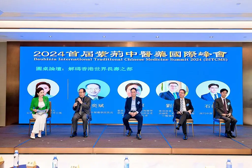 其后,香港大學中醫(yī)藥學院院長馮奕斌,香港大學醫(yī)學院生物醫(yī)學學院終身教授、亞洲衰老研究學會創(chuàng)會主席周中軍,香港浸會大學暫任首席創(chuàng)新總監(jiān)、校長資深顧問暨中醫(yī)藥學院榮譽教授劉樂庭,澳門中醫(yī)藥學會會長石崇榮圍繞“解碼香港世界長壽之都”主題展開探討。