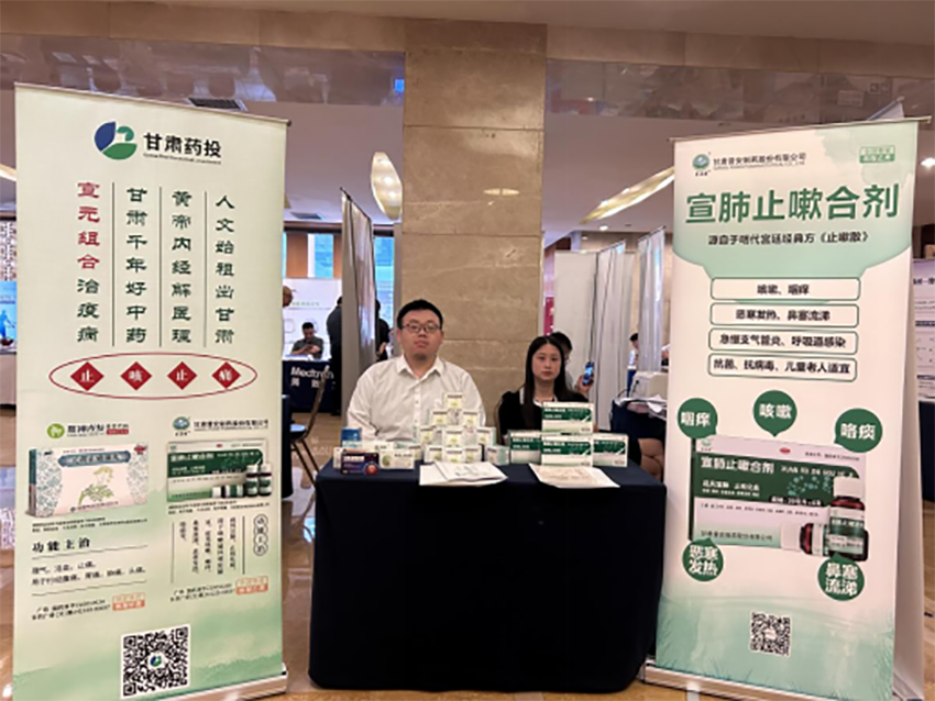 甘肅藥業(yè)投資集團有限公司攜元胡止痛滴丸、宣肺止嗽合劑、麻杏止咳膠囊、七味溫陽膠囊、斯娜格藥膜、黃芪當(dāng)歸膠囊、復(fù)方丹參片等特色隴藥產(chǎn)品亮相此次盛會,并在會場展區(qū)設(shè)置展臺宣傳。