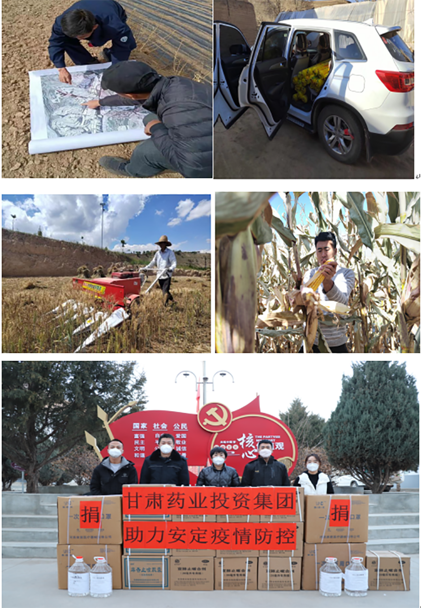 這一年,我們筑牢主陣地,以防疫春耕秋收為抓手確保打贏疫情阻擊戰(zhàn)。越是關(guān)鍵時刻越能檢驗(yàn)初心使命,越是勇毅擔(dān)當(dāng)越能看出黨性成色。疫情爆發(fā)后,工作組積極響應(yīng),迅速組織召開村“兩委”會議,成立黨員突擊隊入戶走訪,開展地毯式排查,并通過大喇叭播放、入戶發(fā)放明白紙、微信群發(fā)布相關(guān)知識等形式,向全體村民宣傳防疫信息,以強(qiáng)有力的引導(dǎo)切實(shí)提高村民自我防疫意識。并積極參與寧遠(yuǎn)鎮(zhèn)高速路口,塘灣國道疫情防控執(zhí)勤40次,每次12小時,疫情期間連續(xù)駐村長達(dá)60余天。定西市麻子川駕考中心志愿服務(wù)3天。寒冬已至,隨著大量外出務(wù)工人員返鄉(xiāng)回鄉(xiāng)人數(shù)的持續(xù)增加,定西市安定區(qū)李家堡鎮(zhèn)疫情防控輸入風(fēng)險不斷增加,形勢嚴(yán)峻。作為省直幫扶單位,甘肅藥業(yè)投資集團(tuán)堅決夯實(shí)幫扶責(zé)任,履行國有企業(yè)社會責(zé)任和義務(wù),捐贈防疫物資宣肺止嗽合劑、麻杏止咳膠囊、口罩、酒精等,總價值約6萬余元,第一時間助力李家堡鎮(zhèn)打贏疫情防控阻擊戰(zhàn)。