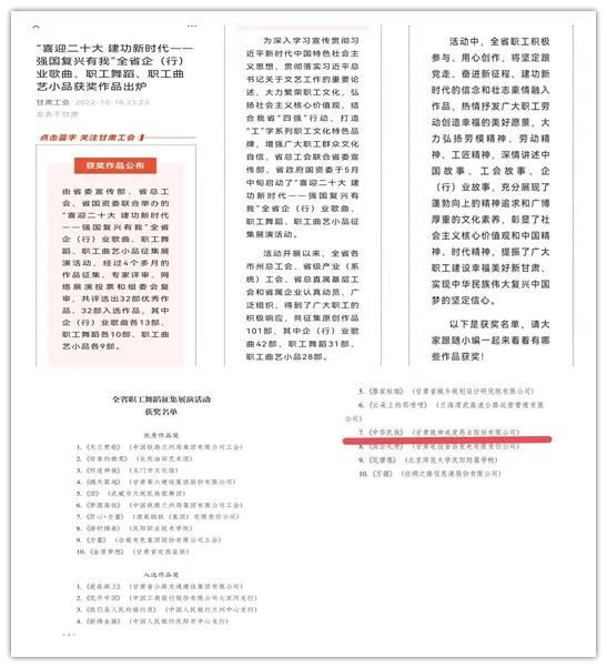 近日,由甘肅省總工會、省委宣傳部、省政府國資委于5月中旬主辦的“喜迎二十大 建功新時代 強國復(fù)興有我”全省企(行)業(yè)歌曲、職工舞蹈、職工曲藝小品征集展演、評選活動結(jié)束,由甘肅藥業(yè)集團選送的隴神戎發(fā)舞蹈《中華民族》喜獲職工舞蹈類入選作品獎。