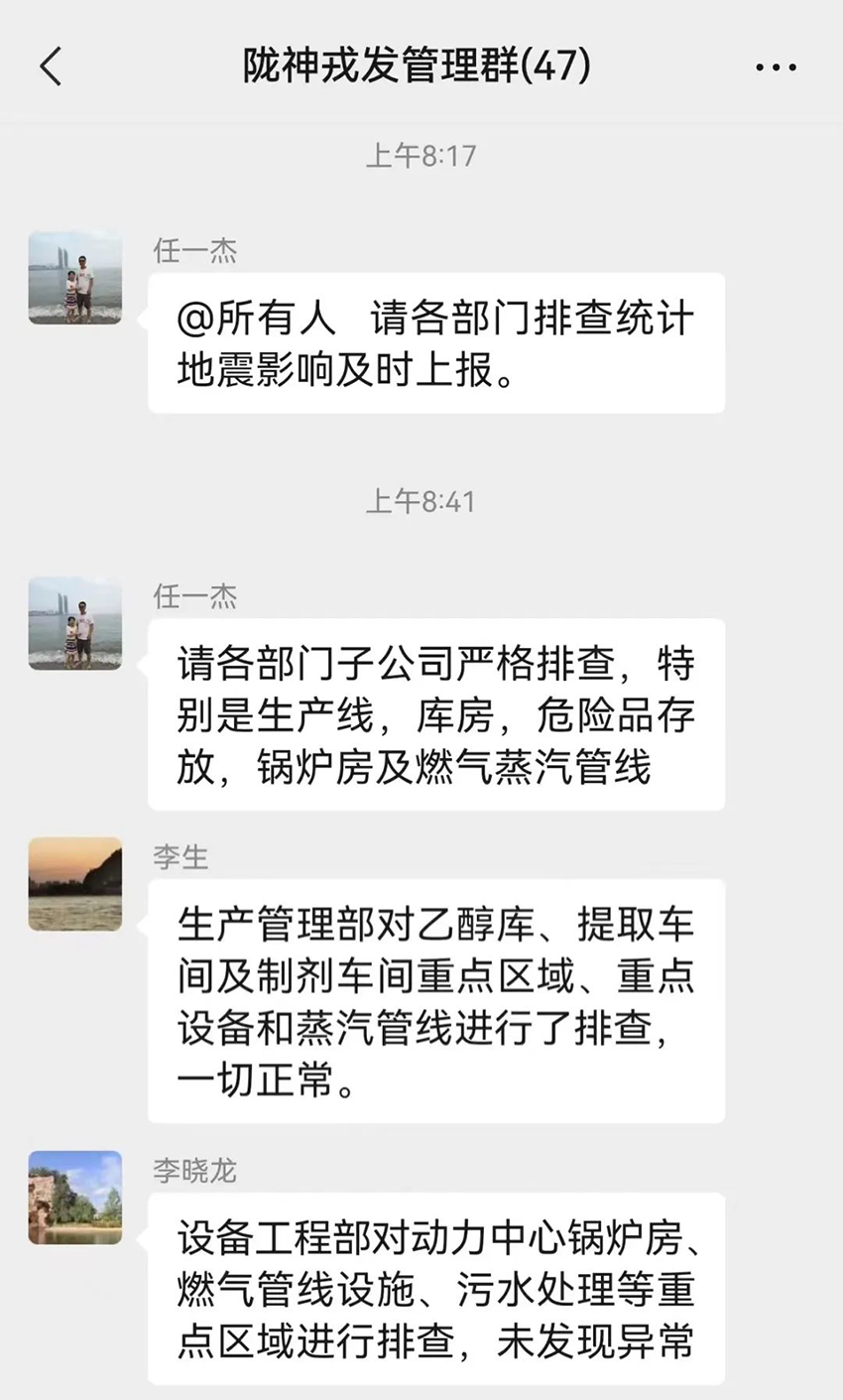 甘肅積石山縣地震發(fā)生后,隴神戎發(fā)認(rèn)真貫徹落實(shí)集團(tuán)公司部署要求,結(jié)合公司實(shí)際,積極開(kāi)展隱患自查排查工作。12月19日下午公司安委會(huì)邀請(qǐng)?zhí)m州高新區(qū)安監(jiān)局及專家一行5人,對(duì)公司質(zhì)檢辦公大樓、動(dòng)力中心、污水處理站、乙醇庫(kù)、前處理提取車(chē)間、固體制劑車(chē)間等各個(gè)單體的建筑結(jié)構(gòu)、外墻裂縫、廠區(qū)道路塌陷等情況進(jìn)行詳細(xì)檢查,經(jīng)檢查未發(fā)現(xiàn)因地震引起的安全隱患,公司運(yùn)營(yíng)一切正常。