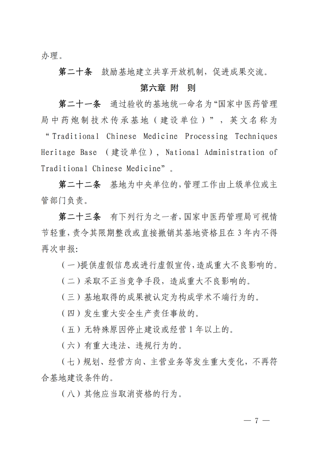 國家中醫(yī)藥管理局關于印發(fā)中藥炮制技術傳承基地建設管理辦法及建設標準的通知