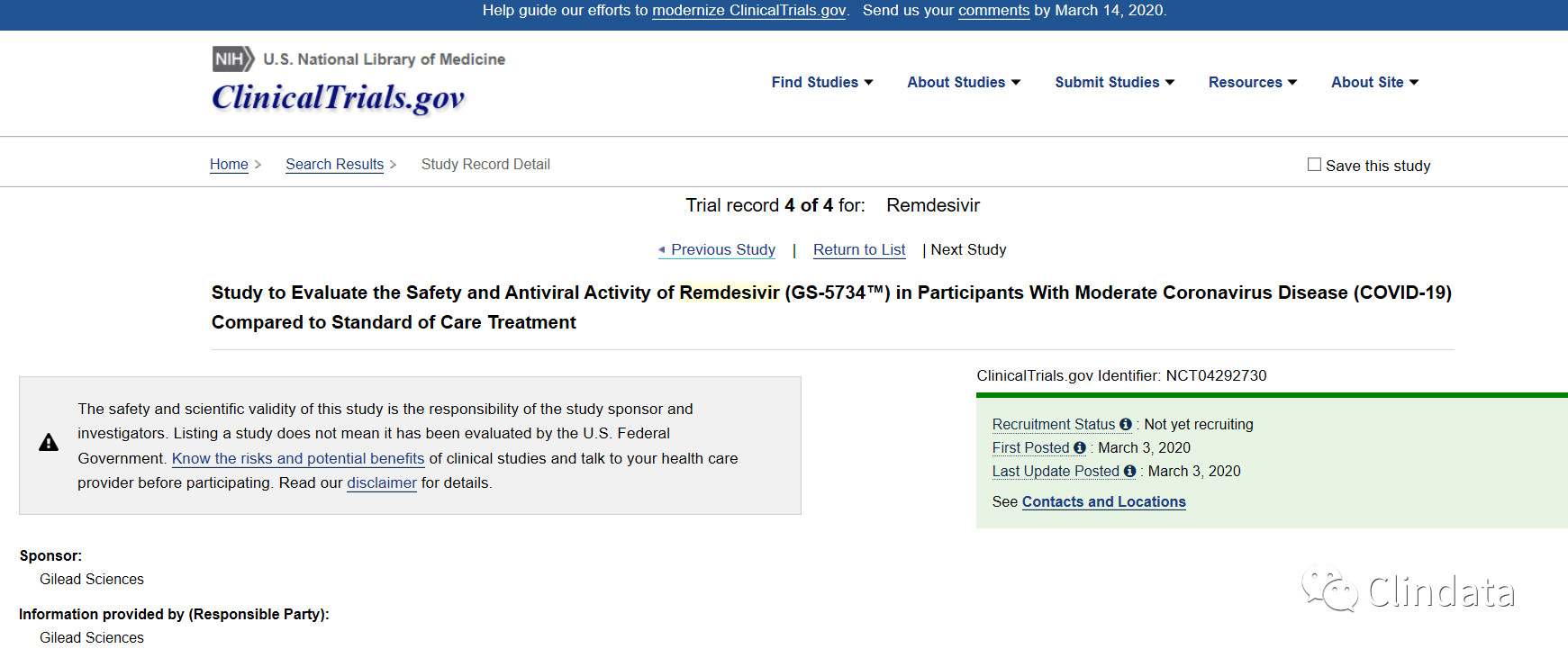 Gilead recognizes the urgent public health needs posed by the COVID-19 pandemic. The company is working to advance the development of remdesivir as quickly as possible, and will provide updates as they become available.