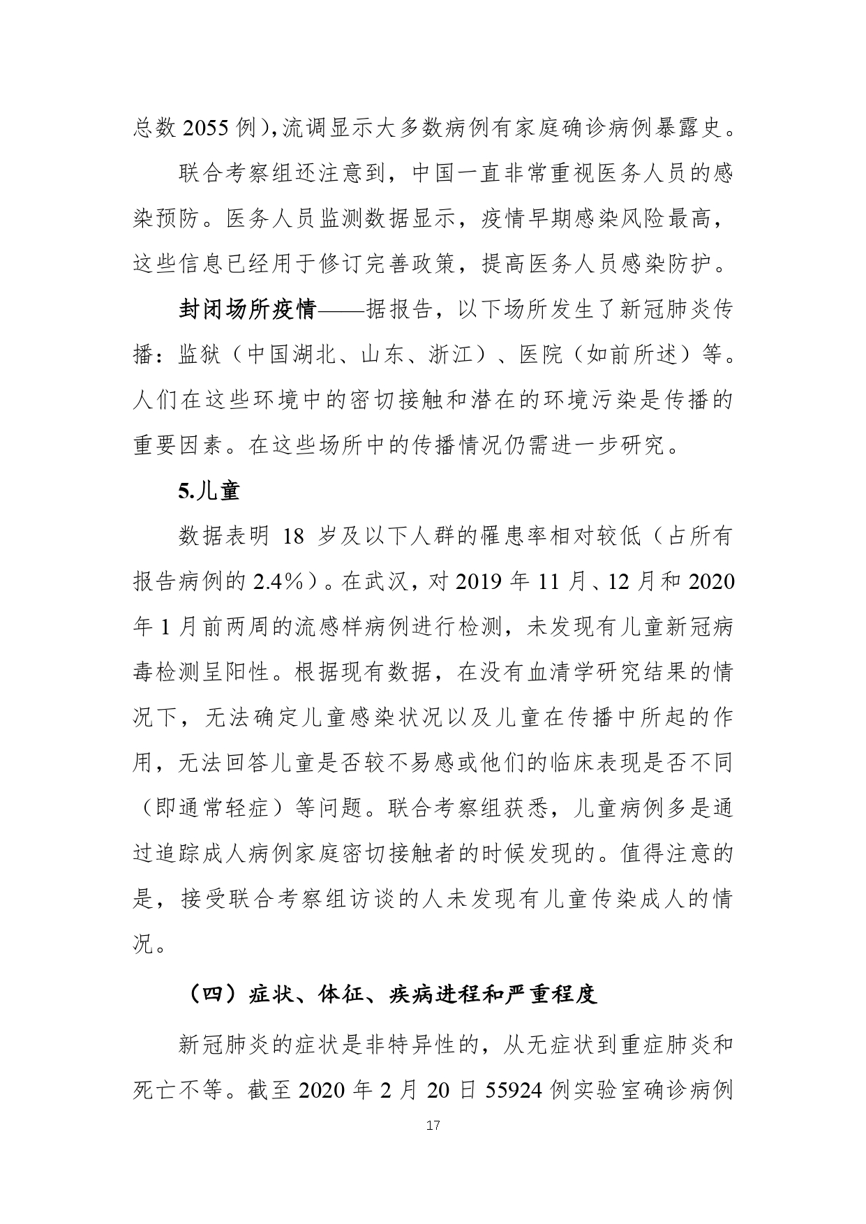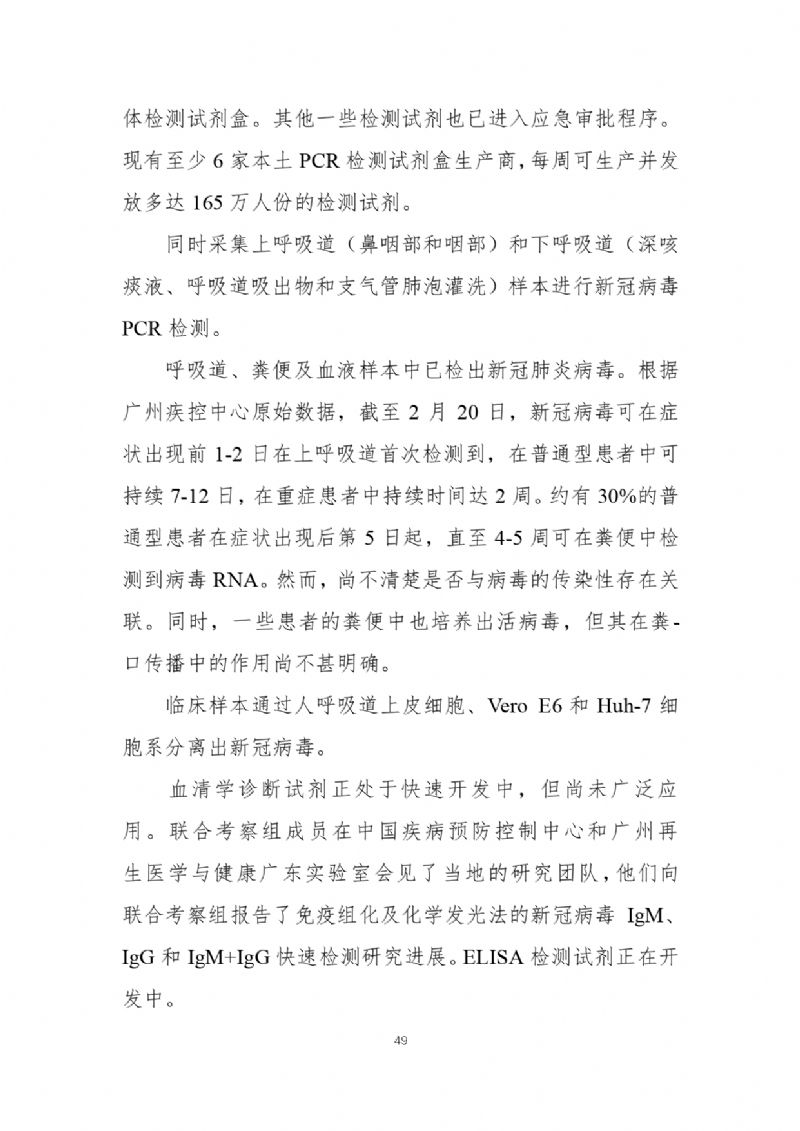2月29日,國家疾病預防控制局發(fā)布《中國-世界衛(wèi)生組織新型冠狀病毒肺炎(COVID-19)聯(lián)合考察報告》,對重視問題、主要發(fā)現(xiàn)、中國和全球應對措施及下一步工作進行了闡述,并且公布了部分實驗室檢驗、診斷與病毒學、研發(fā)等方面詳細的技術調(diào)查結(jié)果。
