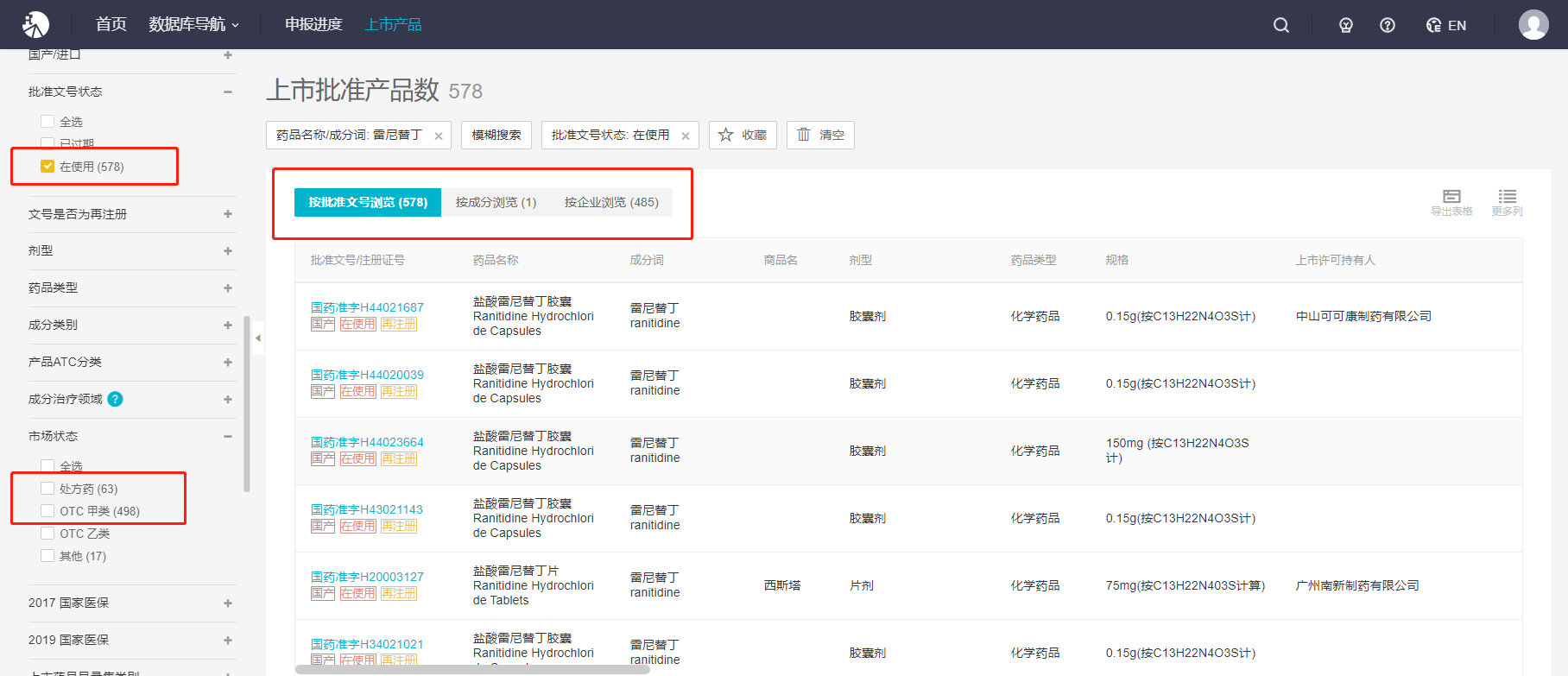 根據(jù) Insight 數(shù)據(jù)庫信息,雷尼替丁最早于 1985 年就在國內(nèi)上市,目前國內(nèi)有 743 個批準(zhǔn)文號,在使用文號 589 個,485 個廠家生產(chǎn)該品種。