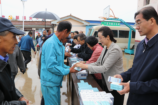 在捐贈儀式上,公司黨委委員楊俊萍代表公司做了企業(yè)及產品介紹并現場發(fā)放藥品。公司控股子公司三元藥業(yè)副總經理付樹紅向群眾詳細的講解了產品主治功能和服用劑量。